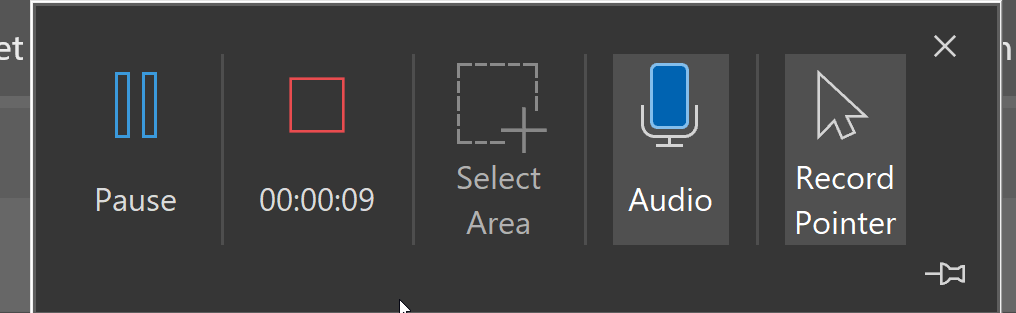 - When you are done recording, press Windows logo + Shift + Q or hover to the top middle of the screen to stop or pause the recording.